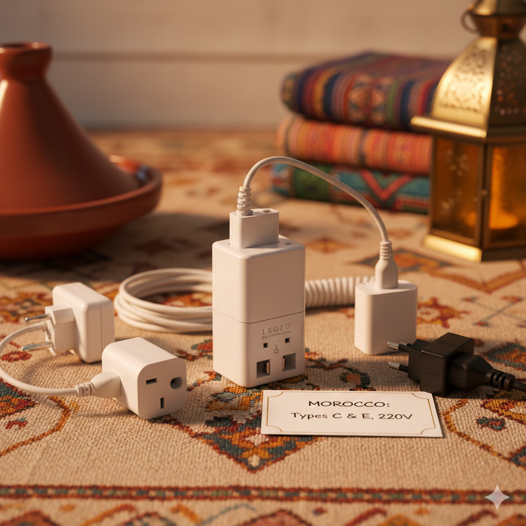 Morocco uses Type C and Type E plugs, with a 220V supply. A simple travel adapter will keep your devices charged.